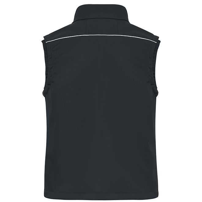 Professionelle Softshellweste im cleanen Look mit hochwertigen Details Oberstoff (320 g/m²): 100% Polyester Work-Level: SOLID Große Größen Softshell Atmungsaktiv Wassersäule ab 1.500 mm YKK - Reißverschluss